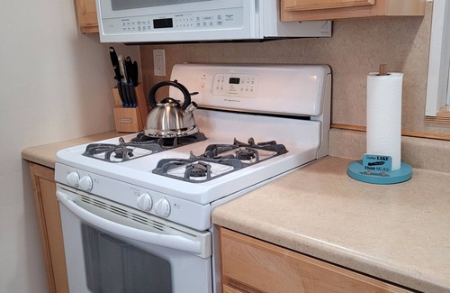 The cottage is cozy with all of the amenities of home. Kitchen is fully equipped with gas range and dishwasher. Washer/Dryer are conveniently located right off the kitchen. There is an outdoor patio with gas grill, picnic table and rocking chairs to enjoy the lake view. Launch the kayaks from the shore and enjoy the lake up close and personal!
