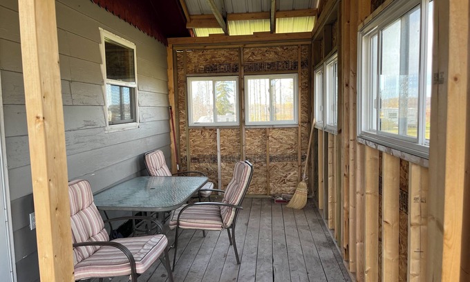 There is also a BBQ and propane, picnic table, chairs, fire pit, hot dog sticks and firewood.