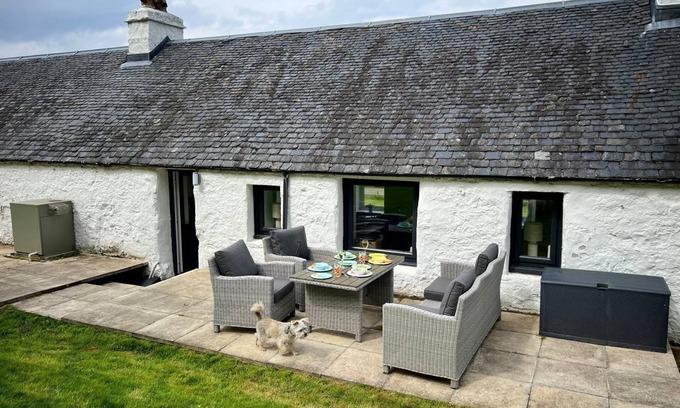 Big weekly discounts available. Get away from it all in a traditional stone cottage in the heart of the Scottish Highlands close to Loch Ness, the Great Glen Way and Ben Nevis. Dogs are very welcome here and can enjoy the enclosed garden and dog-friendly furniture while you relax in the spacious open-plan living area with log-burner. Amazing views of mountains & countryside - you may even see deer in the garden!