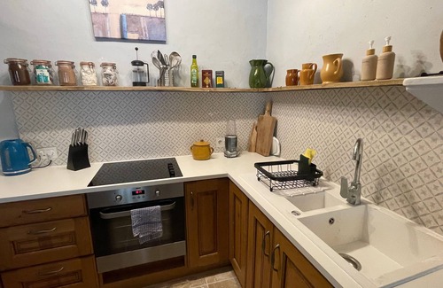 The heart of the house is a spacious, fully equipped kitchen with a dining table that seats 8 – perfect for group meals, family breakfasts, or long conversations over wine and cheese.