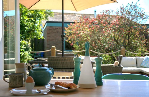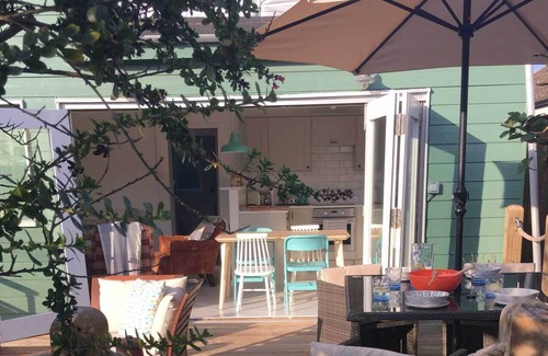 Original painted floorboards, contemporary furnishings and super comfortable beds with 100% cotton bedlinen. It has a south facing fully enclosed and private garden. The property opens onto a 20m² deck which is ideal for lounging or dining al fresco. Even on those days when the onshore breeze is brisk, this garden remains a sheltered warm haven fully enclosed so great for children and four legged friends!