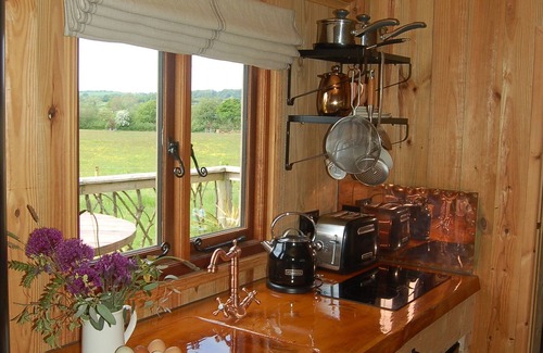 An induction hob, microwave, toaster, kettle, fridge and Belfast sink can be found in the kitchenette, along with all the basic equipment you need to cook and serve a tasty meal.