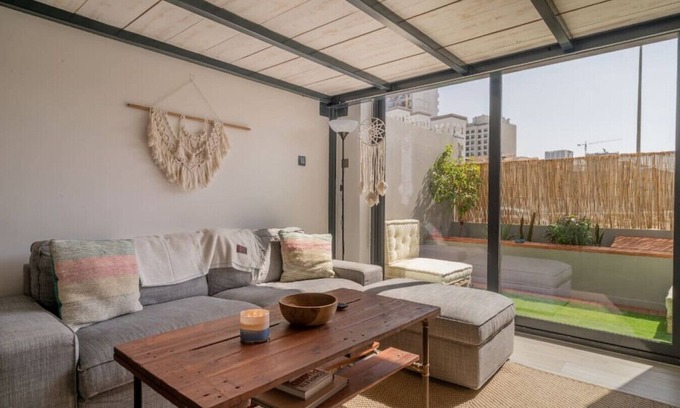 The loft has a spacious living room and just upstairs you can find the bed in this beautiful open space and a wide balcony where you can unwind.