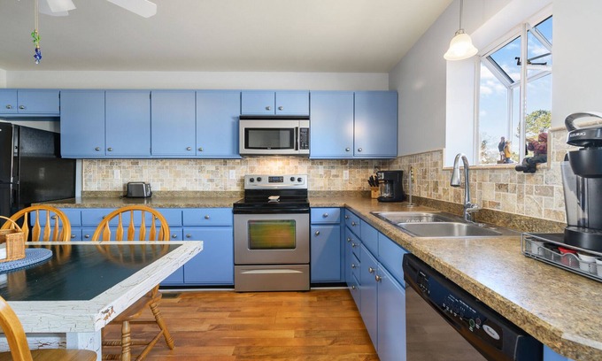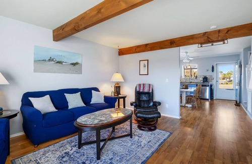 Oyster Bay Hideaway sleeps 5 more than comfortably with 2 Master Bedrooms, each with its own Private Master Bath. Bedroom 1 is bright and cheerful with sunny yellows and a comfy Queen Bed and Flat Screen TV. Bedroom 2 is decorated with colors of Sea Glass - blues, grays, and pale greens - just lovely. Both Full Baths have a Tub/Shower Combo.