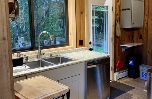 Vaulted ceilings, all cedar interior, and a wood burning fireplace make for the perfect rustic Vermont experience!
