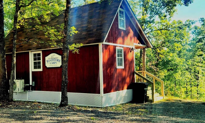The horse-themed cabin, The Windstorm sits on a ridge in the Ozark mountains just outside of Marshall, Arkansas. An RV pad with water-electric-sewer is adjacent to the cabin so for larger groups, bring your RV (RV pad rent is additional) From the front deck a beautiful view of the Ozark mountains can be seen. Having the amenities of home, you will find it extraordinarily comfortable but secluded enough to get away from the hustle-bustle of the city. It has a 3/4 bathroom with a walk-in shower, a two-person Jacuzzi tub on the deck, a loft with a queen bed and a sofa-sleeper that opens into a queen sleeper with a memory foam mattress. The kitchen has a two-burner cooktop, dishwasher, microwave, air-fryer/convection oven combo, coffee maker, and apartment sized fridge with an icemaker. A full-size washer and dryer are also available. The climate is controlled with a dual zone, mini-split AC/heat pump but also has an infrared fireplace heater. Outside you can enjoy the spacious 12' x 16' gazebo (covered pavilion) with a large fire pit next to it and a large enough covered BBQ grill to host a family gathering. The main attraction to the area is the beautiful, scenic Buffalo River that is famous for its one-of-a-kind float trips. The area is loaded with lots of activities for the outdoor enthusiast!