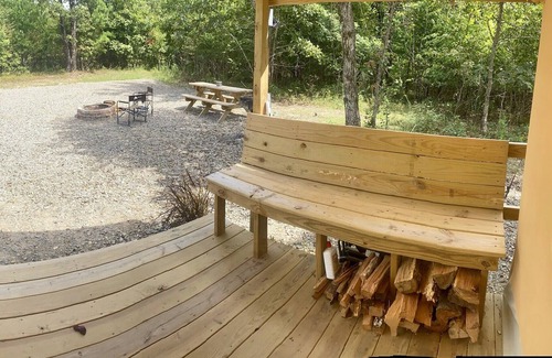 A unique tent experience in the heart of the Ozark National Forest. Our 20 x 16 canvas wall tents have 2 queen beds and are heated and cooled. Each site has a firepit and grill and we have a 2 bath, bathhouse. Our location offers convenient access to hiking, fishing, atv riding, rivers, or just star gazing. Join us for an amazing outdoor experience and let the hassle of setting up a tent be ours. Big and little kids welcome.