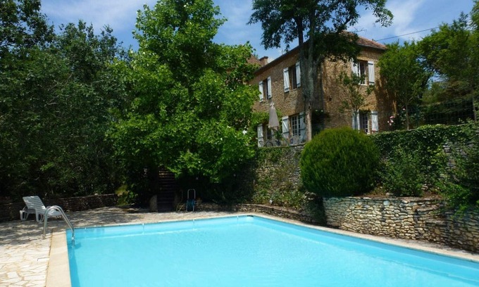 Charming house Perigord stone with large pool (14 x 6 m) secure. Enjoy the quiet, the freshness of a stone house, adjoining the house of friends. 3 bedrooms in the main house and 2 bedrooms in the second house.