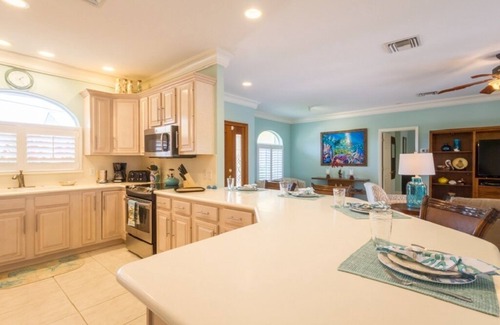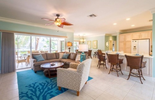 A premier home in a premier location! This 3 bedroom, 2 bathroom home is one of a kind. An all ground level home boasting a large open floor plan and ease of access gives guests the freedom to spread out and enjoy all this tropical home and grounds have to offer.
