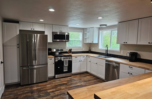 Step inside to find an airy, open-concept layout with plenty of seating for entertaining, a fully equipped kitchen built for big meals and memory-making, and a comfortable living space ideal for game nights or unwinding after a day of exploring. The home features 4 bedrooms, including a master suite, along with 1 full bathroom and 1 three-quarter bathroom, making it ideal for family gatherings or group getaways.