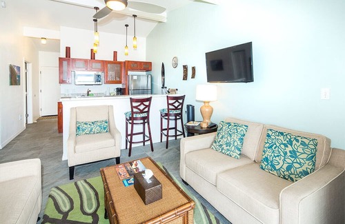 You may never want to leave the oceanfront lanai of this 864 sq ft Kauai vacation home! Prepare meals in the upgraded kitchen with dishwasher, and then relax with WiFi and a flat screen TV. Other conveniences include a private den and ceiling fans. Sleeps 4 guests in one king, two twins, and one sofa bed.