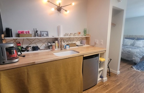 Have the most epic summer vacation ever, just one mile from Highway 1 and three miles north of downtown Fort Bragg. Our open-concept 2-bedroom, 1-bath house boasts skylights, vaulted ceilings, a cozy wood stove, a sectional sofa, and a 65" television in the spacious living area. Every rental includes a charming separate in-law unit with a kitchenette and en suite bathroom, ideal for families, staycations, or monthly rentals with a dedicated space for your guests. Enjoy generous weekly and monthly discounts! Prices recently automated (lowered across the board).