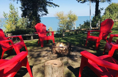 Relax or play on your own sandy beach at this waterfront beach home!! The Beach House has a 180deg beautiful scenic view of Lake Huron with a 100ft stairway down to your private beach!