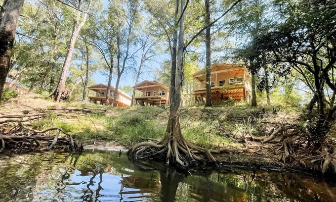 *NEW* Paddlewhacks is a group of 5 cabins nestled along the Big Cypress Bayou towards Caddo Lake. We are right on the water yet a one minute drive into Downtown Jefferson. It is the best of both worlds-unique shopping and restaurants with immediate access to canoeing and fishing. Each cabin has 2 bedrooms, 1 bathroom, open concept living/dining areas, small kitchen, and a front patio. Every cabin comes with a canoe, paddles, life jackets, and access to our group firepit and private kayak ramp.