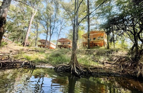 *NEW* Paddlewhacks is a group of 5 cabins nestled along the Big Cypress Bayou towards Caddo Lake. We are right on the water yet a one minute drive into Downtown Jefferson. It is the best of both worlds-unique shopping and restaurants with immediate access to canoeing and fishing. Each cabin has 2 bedrooms, 1 bathroom, open concept living/dining areas, small kitchen, and a front patio. Every cabin comes with a canoe, paddles, life jackets, and access to our group firepit and private kayak ramp.