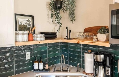 This listing is to rent all 5 of our *NEW* cabins (and separate Bunkhouse) nestled along the Big Cypress Bayou headed towards Caddo Lake. Sleeps 27. We are right on the water yet a one minute drive into Downtown Jefferson. Each cabin has 2 bedrooms, 1 bathroom, open concept living/dining areas, small kitchen, and a front patio. The Bunkhouse has 2 twins and a pull out queen couch with small kitchen and bathroom. You will have the entire property including 2 firepits and a private kayak ramp.