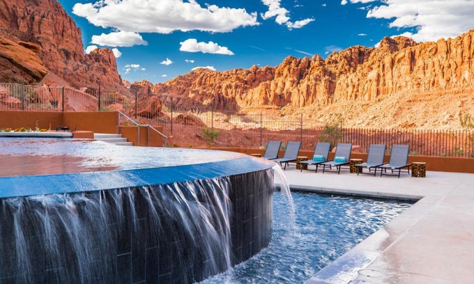 Boasting air-conditioned accommodation with a private pool, pool view and a patio, Padre Canyon Residences - Double Masters with Pool is set in Ivins. Featuring free private parking, the villa is in an area where guests can engage in activities such as hiking and cycling. This villa comes with 2 bedrooms, a kitchen with a dishwasher and a microwave, a flat-screen TV, a seating area and 2 bathrooms equipped with a hot tub. Towels and bed linen are featured. The villa offers a hot tub. An outdoor swimming pool and water sports facilities can be found at Padre Canyon Residences - Double Masters with Pool, along with a terrace. St George Temple is 14 km from the accommodation, while Jacob Hamblin House is 9.3 km away. The nearest airport is St. George Regional Airport, 36 km from Padre Canyon Residences - Double Masters with Pool.