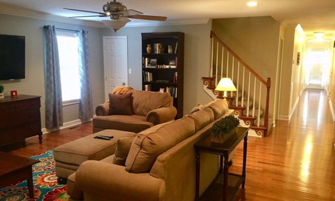 A very safe and convenient neighborhood across from the Paducah Country Club . An easy drive to historic downtown, mall area, best shopping and many restaurants. This well appointed residence has fully loaded kitchen, washer/dryer and private deck with large backyard. The large den, dining room and kitchen are an open floor plan. Two bedrooms on the first level with 2 full baths. The upstairs is a suite with full bath and plenty of room to sleep 4 or more! Enclosed two car garage with parking for 5 vehicles. 4 night minimum stay. Luxury space at competitive rates!