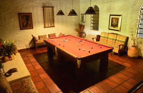 Paineiras Hotel Fazenda in Uberaba provides accommodations with a bar and a shared lounge. This property offers access to a patio, a pool table, free private parking, and free Wifi. Guests can make use of the sun terrace or the picnic area, or enjoy views of the pool and garden. Accessible via private entrance, all rooms have air conditioning, soundproofing, wardrobe, and a private bathroom with a bidet. For added convenience, units come with a dressing room. Additional in-room amenities include wine or champagne, fruit, and chocolates or cookies. Buffet and continental breakfast options with local specialities, fresh pastries, and fruit are available. Guests can eat at the on-site family-friendly restaurant, which is open for dinner, lunch, brunch, and cocktails. For guests with children, the country house provides an indoor play area and a kids' club. Guests can swim in the infinity pool, go cycling or hiking, or relax in the garden. Mário de Almeida Franco Airport is 6.2 miles away.