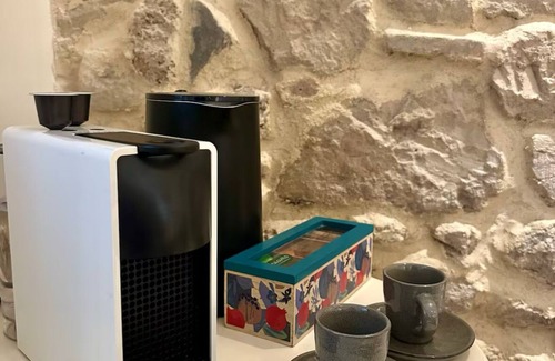 As you settle into this 1-bedroom, 1-bathroom rental, you'll find a living room and air conditioning. Enjoy the WiFi and TV. Bathroom amenities include a jetted tub, along with a hair dryer, a bidet, and towels. The kitchenette is equipped with a stovetop and a refrigerator, as well as a coffee maker, an electric kettle, and cookware. Other amenities include bed sheets, housekeeping, and heating.