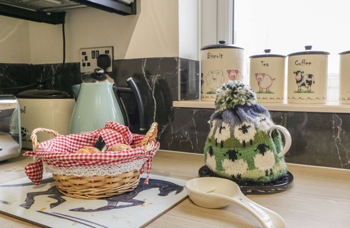 Amenities: Central heating. Electric oven and hob, microwave, fridge, fridge/freezer, washer/dryer, dishwasher. Smart TV, Alexa, WiFi. Fuel and power inc. in rent. Bed linen and towels inc. in rent. Owner provides toiletries and some cleaning supplies. Off-road parking for 2 cars. Enclosed garden with lawn and patio area. Three well-behaved dogs welcome. Sorry, no smoking. Shop 1.2 miles, pub 2 miles. Note: There is a step up into the property. Note: The garage is wheelchair-friendly and houses the fridge/freezer. Note: Guests are asked to bring their own highchair and travel cot. This property has a 4 night minimum restriction.