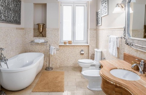Housed within a historic building, Palacina Berlin boasts elegantly appointed apartments featuring a harmonious blend of antique-style and modern furnishings. Each apartment exudes charm and comfort, with amenities such as a luxurious marble bathroom, a flat-screen TV, and exclusive access to a serene courtyard and a rooftop terrace.