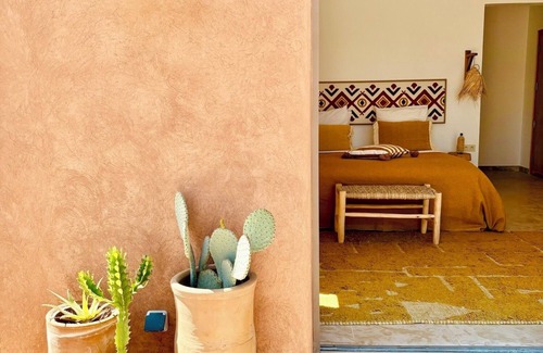 A few minutes from the Medina of Marrakech, this magnificent villa is a true haven of peace, built around a sumptuous swimming pool with its deckchairs to enjoy the mild climate and the Moroccan sun. With a neat decoration in the "Beldi chic" style, 3 beautiful bedrooms with large double beds and 3 beautiful bathrooms are at your disposal. A large living room with sofas, armchairs and a dining table await you to relax in the sweetness of a thousand and one nights. Fully air-conditioned, with Wifi Internet. The kitchen is fully equipped. House staff on site and caretaker.