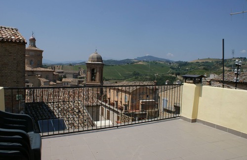 The Palazzina Offida is a medieval building situated in via San Martino, in the heart of historic town centre of Offida. The building rises higher than any other of the surrounding neighbors, which historically was a symbol of power and wealth. The building has been restored and contains approximately 200 m2 of living Space, not to forget a balcony and a large roof terrace with a panoramic view on Offida. The ground floor, with the main entrance, contains a large kitchen with dining area. The beautifully restored staircase in the main entrance leads to the first floor, which contains living room and bedroom. On the second floor you will find another two bedrooms, one with a balcony over viewing the towers and rooftops of Offida, and especially beautiful at night when the church-towers and dome are illuminated. From the second floor you will find another staircase leading to the loft with access to a large roof terrace overlooking the historic town centre and countryside around Offida.