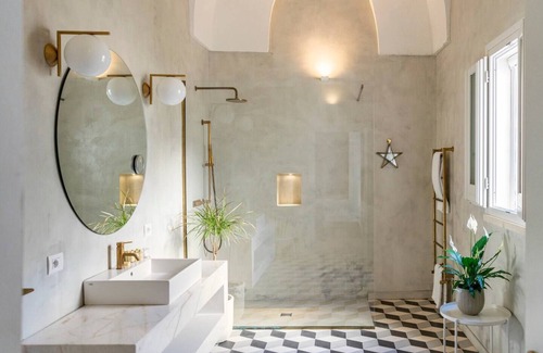 Palazzo Andriani dates back to the 16th century and is situated in the heart of Galatina’s historic centre. The property was recently restored in a manner that combines contemporary amenities with a style that respects the architectural heritage of the structure and surroundings. This apartment is a large 1-bedroom with 2 full bathrooms and a large, private terrace with access to several other terraces. Search the internet for "Palazzo Andriani Galatina" to see our 5-star guest reviews.