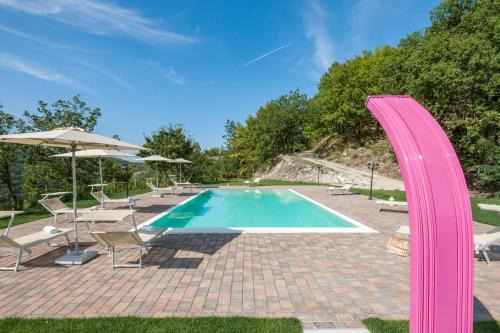 Offering a garden, Palazzo Ducale Urbino - Villa con Piscina offers accommodations in Stazione delle Pole-Piobbico. This property offers access to a terrace, free private parking, and free Wifi. The pool features a fence and garden views. The air-conditioned villa is composed of 4 separate bedrooms, a living room, a fully equipped kitchen with a dishwasher and oven, and 3 bathrooms. A flat-screen TV with streaming services is offered. The accommodation has a fireplace. Urbino Cathedral is 17 miles from the villa, while Telecabina Caprile Monte Acuto is 18 miles from the property. Perugia San Francesco d'Assisi Airport is 46 miles away.