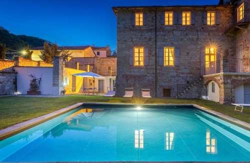 A charming old residence stands at the foot of the town of Ottiglio, in the heart of the Monferrato, declared Unesco World Heritage Site, where time seems to have stood still. This is Palazzo Pozzo Bonelli, built in the 16th century by the noble family of the same name from Milan, as certified in the historical papers of the Ottiglio archive. Over the course of the centuries the house was also inhabited by the Viceroy of Sardinia, Cavaliere Montiglio di Ottiglio, then was donated to the curia of Casale Monferrato which designated it as a parochial residence in the last century. The house has recently been restored under constraint of the Superintendence of Fine Arts of Turin, respecting the standards and adapting it to contemporary use. Every day of your holiday you will be able to admire but, above all, to experience the works and breathe the atmosphere of the large rooms of the house; from the grand noble hall with antique coffered ceiling dating back to the 1600s, to the rare "Venetian" inlaid floor of a double bedroom, to the 17th century "double umbrella" vault of the kitchen, to the splendidly frescoed "single umbrella" vault of the dining room. And then the fireplaces, the terracotta floors, the frescoes and the remains of antique decorations on the walls, together with many paintings and antiques that find their natural and elegant place in this magical context. The garden which extends over an area of about 900 sq m is fully fenced, protected by the house itself, by stone walls and rich vegetation which guarantee the property privacy and tranquillity so that the beautiful swimming pool, the solarium and the lovely pergola can be enjoyed in complete freedom. The air conditioning in all the bedrooms, the spacious modern bathrooms, the accessories, equipment and appliances in the kitchens represent the modern tools to offer guests the best possible comfort during their stay.