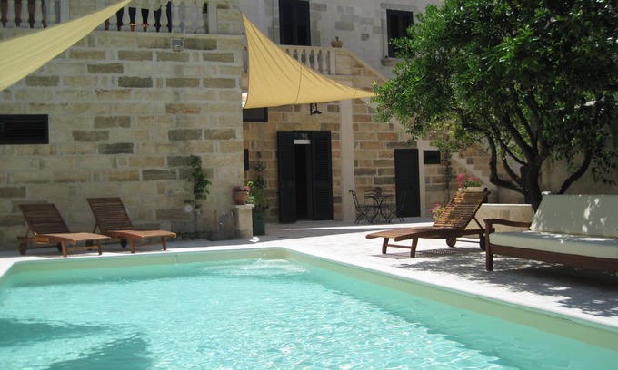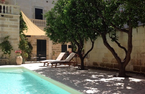 ****palace Umberto****is a historic building (1700 d.C) of great value lies in the medieval village of Poggiardo, among the best in the Salento, near the sea of Santa Cesarea Terme, Castro (3 KM) and the golden beaches of Otranto (KM 10). Behind the palace is a garden enclosed 'secret' and intimate, with a beautiful swimming pool set in white stone of Trani, with Jacuzzi. A pool is a citrus that acts as a natural umbrella and relaxing on comfortable beds. The old structure has a strategic position within each day you can choose a different beach of the most beautiful (140 km of beach). Inside you will find comfort, nature and confidentiality; out of the Baroque Piazza offers folkroristici events, festivals, exhibitions, musical concerts, wednsday markets, caffè and restaurant walking distance, bakery, folk dances of pinches, parties with fairy lights, nightlife, workshops, old chemist, airdress, etc. .. . Enchant architecture of the house of beauty and craftsmanship of the time of the original floors of the time ......