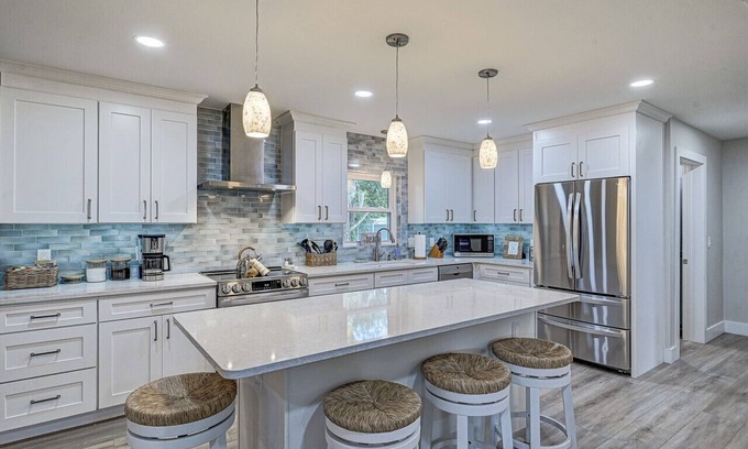 This beautifully updated one-story beach home is perfect for the entire family! Four bedrooms include: 1 king, 2 queens, and a daybed that can be converted from a twin to a king - each with their own smart TV. The fourth bedroom also features a workspace and games - great flexibility for large groups! Enjoy a spacious family room and kitchen with enough seating for all. Throw some tunes on the soundbar, light up the grill, and make yourself at home!