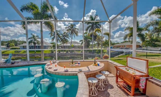 PALM BREEZE - SWIM UP TO THE BAR! Integrated spa, Outdoor grill, Fire pit! | House in Cape Coral