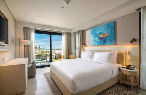 Palma Bay Rotana Resort - New Alamein offers 176 air-conditioned accommodations with minibars and safes. 42-inch Smart televisions come with satellite channels. Bathrooms include bathrobes, slippers, complimentary toiletries, and hair dryers. Additionally, rooms include complimentary bottled water and irons/ironing boards. Cribs/infant beds (complimentary) are also available. Housekeeping is provided daily.