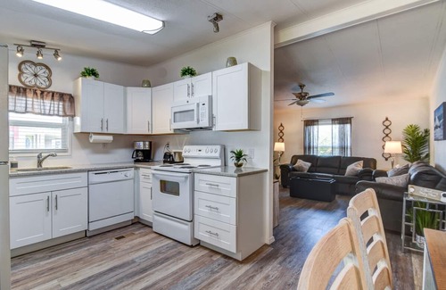 We have everything you need: Fully equipped kitchen, WiFi, cable, 58″ hdtv, dvd player, hair dryer, iron, washer, dryer... even beach chairs, umbrella, and cooler for your trip to the beach. Heated community pool & shuffleboard too!