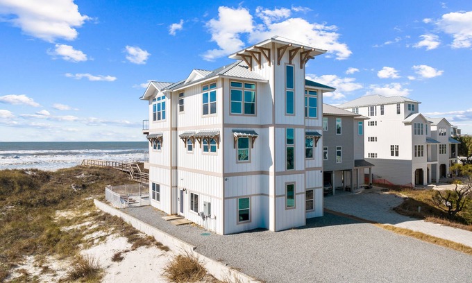 Palmetto: Stunning Beachfront Oasis- 8 BR, Pri Pool, Pet Friendly, Sleeps 16! is located in Port St. Joe. Palmetto: Stunning Beachfront Oasis- 8 BR, Pri Pool, Pet Friendly, Sleeps 16! provides accommodation, featuring Parking, Security/Safety, View, among other amenities. This House features Parking, Security/Safety, View, to make your stay a comfortable one.
