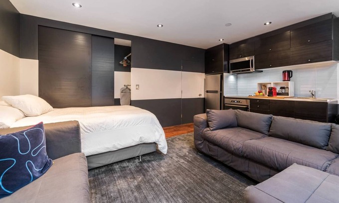 We provide everything you need for a relaxing stay ... a comfy queen-sized bed, comfortable couches, a large screen TV, a work area, a bathroom, and a fully stocked kitchen, including a Nespresso machine to get you going in the morning!
