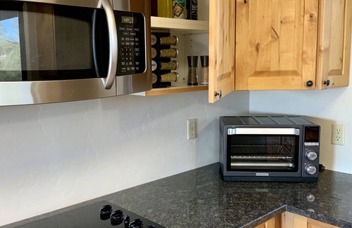 There are 2 patios to enjoy seeing desert wildlife up close and personal and take in the gorgeous up-close-and-personal desert flora, jaw dropping mountain vistas, and sweeping city lights.