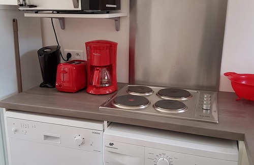 We would be delighted to welcome you to our air-conditioned villa comprising: 2 bedrooms, 1 shower room, a large living room with fitted kitchen, a dishwasher, a washing machine, a filter coffee maker, a toaster, a kettle, a iron and ironing board, 100 cm TNT flat screen TV, terrace with garden table and chairs, 2 sun loungers, barbecue ...