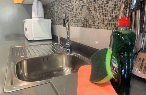 Inside, the open-plan living area includes a fully equipped kitchen, a dining space, and all the comforts needed for a relaxed and functional stay. Whether you're preparing a meal or curling up on the sofa for a quiet evening, everything has been thoughtfully arranged for your enjoyment.