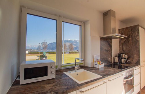 See Lake Zell from the best vantage pointThe Panorama Apartment 2A offered by Steinbock Lodges is a new and modern apartment with panoramic views. A beautiful terrace with plenty of space as well as a balcony offering wonderful views of Lake Zell and the Hohe Tauern with the Kitzsteinhorn glacier.In the living area of the apartment, which is bright and flooded with natural light, you can relax and unwind in a terrific atmosphere. The fully equipped kitchen is ideal to really get you cooking together and enjoy your meal to the full in this wonderful apartment.The bedroom is furnished with an extremely comfortable box-spring double bed and you’ll have plenty of room for hanging your clothes in the spacious wardrobe. The modern bathroom (separate toilet) has a modern walk-in shower. A hairdryer is also available for your use. You are welcome to keep your valuables locked up and secure in a safe.Apartment at a glance:•Accommodates up to four people •One box spring double bed and one sofa bed•Safe for all your valuables•Bread rolls or breakfast can be ordered from the local bakery (for an additional charge)Free private parking is available directly at the apartment building. You are welcome to use the washing machine and dryer in the apartment building for an additional charge. Don’t forget about the ski room with ski boot heating (indispensable in winter) and a bicycle rack (for your two-wheeled excursions in summer) that both belong to the building. Relax in the beautiful garden or enjoy views from the balcony of the glittering lake, the glacier and Kitzsteinhorn – all of which we are very proud!Modern apartment building right on Lake Zell:•Lovely, fenced-in garden•Only 100 m on foot from Lake Zell and the Seespitz lido (with solar-heated swimming pool)•Fully equipped open-plan kitchen with a dishwasher, ceramic hob, oven, microwave, fridge freezer, Nespresso coffee machine and lots of different cooking utensils•Living room with a sofa bed and smart TV, bathroom with shower, hairdryer, extra toilet, a bedroom with lots of storage space, TV and a desk with a stool•Large balcony with a view of Kitzsteinhorn as well as a roomy terrace with sun loungers (in summer) and a wonderful panoramic view of the lake Location:The town of Zell am See in Salzburger Land is surrounded by lakes, mountains and glaciers. The most splendid hiking trails and cycling tours start right from here, taking you into the picturesque mountain world of the Austrian Alps. No need to worry about getting about because Zell am See is also well connected by bus and train. So you can also travel about the region sustainably and fully enjoy your time in Zell am See car-free and carefree! Krimml Waterfalls – the highest waterfalls in Europe – are only an hour away from Zell am See and are always a spectacular sight to behold.Free time:Swimming in summer, skiing in winter – but beautiful Zell am See has much more to offer than just these two activities. The old town of Zell am See with its pretty, old houses is also an inviting place for ample shopping and strolling about while you take in all the sights around and about. Here you will find larger department stores, small boutiques and, of course, souvenir shops where you can pick up a bargain or two – something for all tastes and budgets. Culinary delights await you in modern restaurants and traditional cosy mountain inns. You will find information on current events the website of Zell am See Kaprun Tourismus GmbH (https://www.zellamsee-kaprun.com/en).Are you ready for your holiday in the Austrian Alps? Don’t hesitate to drop us a line now – our team is ready and waiting to hear from you! Our team at Steinbock Lodges is looking forward to meeting you!