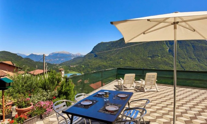 3-room apartment 70 m2, on the ground floor. Modern and stylish furnishings: living/dining room with TV. Exit to the terrace. 1 double bedroom. 1 room with 1 x 2 bunk beds. Open kitchen (oven, dishwasher, 4 induction hot plates, microwave, freezer, electric coffee machine). Exit to the terrace. Shower/bidet/WC, hydro massage shower. Gas heating, underfloor heating. Natural stone floors. Large terrace 100 m2 partly roofed. Terrace furniture, deck chairs (2). Marvellous panoramic view of the lake, the mountains and the valley. Facilities: children's high chair, baby cot for up to 2 year olds. Internet (WiFi, free). Parking (2 cars). Please note: non-smokers only. Private entrance. IT013077C2IL6KWHWQ
