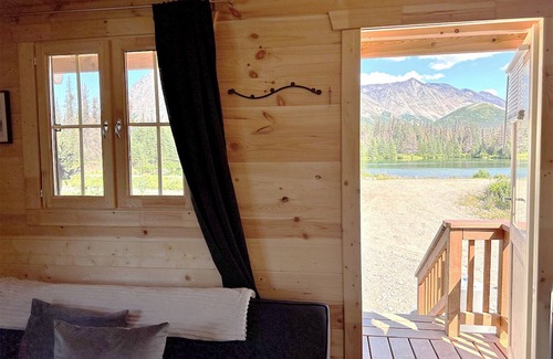 Experience the perfect blend of modern comfort and natural beauty at our brand-new tiny home cabin, ready to welcome guests for the 2024 season! Nestled on a private lakeshore just 20 miles south of Denali National Park, this secluded retreat offers breathtaking views of Panorama Mountain and Nations Mountain right from your doorstep.
