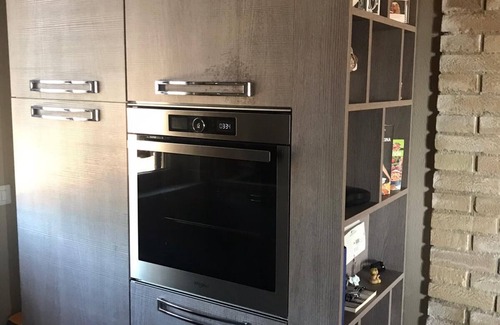 The living area is an open space; a nice peninsula sofa in real leather, flat screen TV, a large modern kitchen with fine furniture with peninsula and stools, equipped with a five-burner hob, dishwasher, fridge, electric oven and microwave, coffee pod machine, toaster and kettle; the living area is completed by a dining corner, with extendable table up to 2meters and 6 chairs, sideboard and flat screen TV.