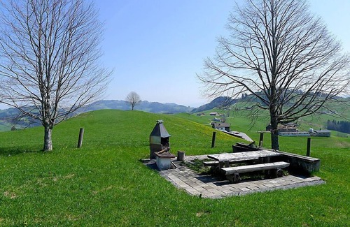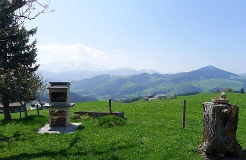 3-room apartment 55 m2 on 2 levels on 1st floor. Renovated in 2024, comfortable and cosy furnishings: living room with satellite TV (flat screen). Kitchen (oven, dishwasher, 4 ceramic glass hob hotplates, microwave, electric coffee machine) with dining table. Shower/WC. Upper floor: 1 large double bedroom. 1 small room with 2 beds. Patio, large garden. Barbecue. Marvellous panoramic view of the mountains, the valley, the countryside and Alpstein + Säntis. Facilities: Internet (WiFi, free). Parking at the house. Please note: non-smoking house. Two rooms of the apartment are in the new building. There is no longer any active farming on the farm. Bookings accepted for holiday purposes only.