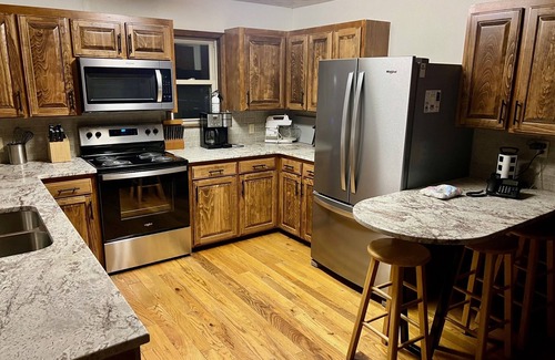 The house has sleeping accommodations for 12 people and linens are provided for the main beds. Enjoy the fresh air blowing through the open windows in the spring or the fireplace on a cool winter night. Central heat and air-conditioning, a fully equipped, newly remodeled kitchen, includes dishes, a dishwasher, and washer and dryer are a few of the amenities. Satellite television on the large Smart TV is included along with internet and a landline telephone.
