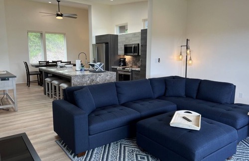 4. Modern Comfort: Our rental homes boast contemporary amenities, open floor plans, modern kitchens, granite counter tops, clean and inviting LVT flooring, wet bar/game room, spacious and multiple common areas with large screen TVs, high-speed internet, washer-dryer inside the home and well-appointed private and en-suite baths and private bedrooms each with in-room TVs.