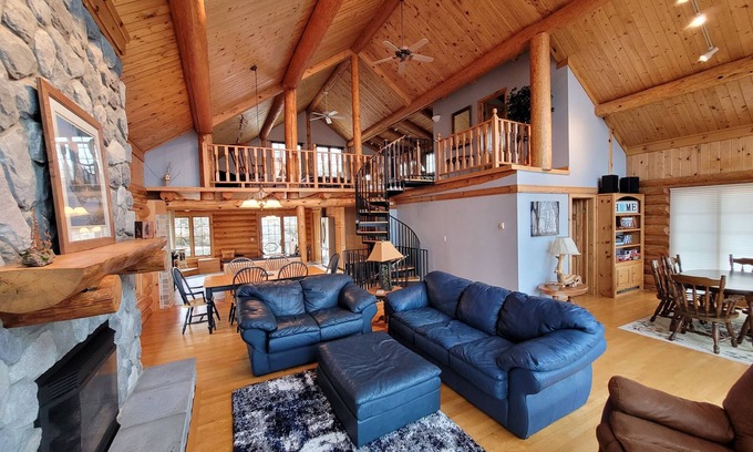 Vermilion Miles Away Lodge is a custom log cabin set against a spectacular ledge rock outcropping with 6 acres of wilderness, 380 feet of shoreline, and 40,000 acres of Lake Vermilion to explore! Breathtaking panoramic island studded views await!