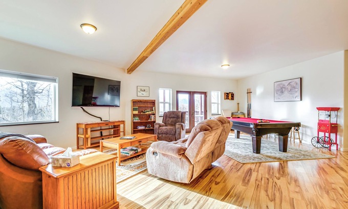 Panoramic Mtn Views: 5-Acre Escape in Palmer! is located in Butte. Panoramic Mtn Views: 5-Acre Escape in Palmer! provides accommodation, featuring Wellness Facilities, Entertainment, Barbecue/Outdoor Cooking, among other amenities. This House features Wellness Facilities, Entertainment, Barbecue/Outdoor Cooking, to make your stay a comfortable one.